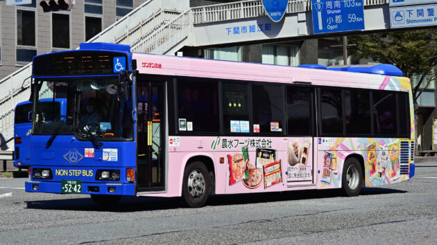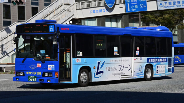 まず港南のH代5台が平成27(2015)年秋~平成28(2016)年春にかけて再登録され、十数年ぶりの移籍再開となった。近年の標準ノンステップ塗装となっている藍青色一色。5184, 5185は彦島、5187, 5192は北浦、5191は新下関所属となる。