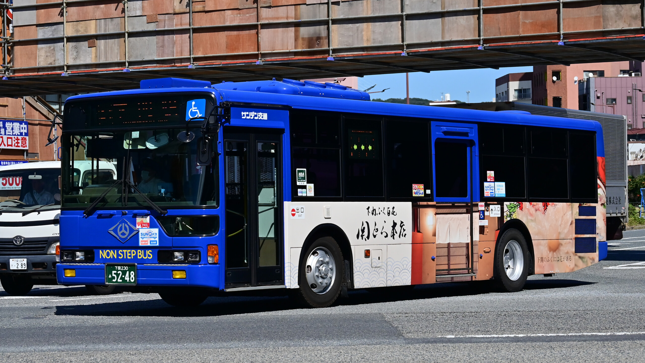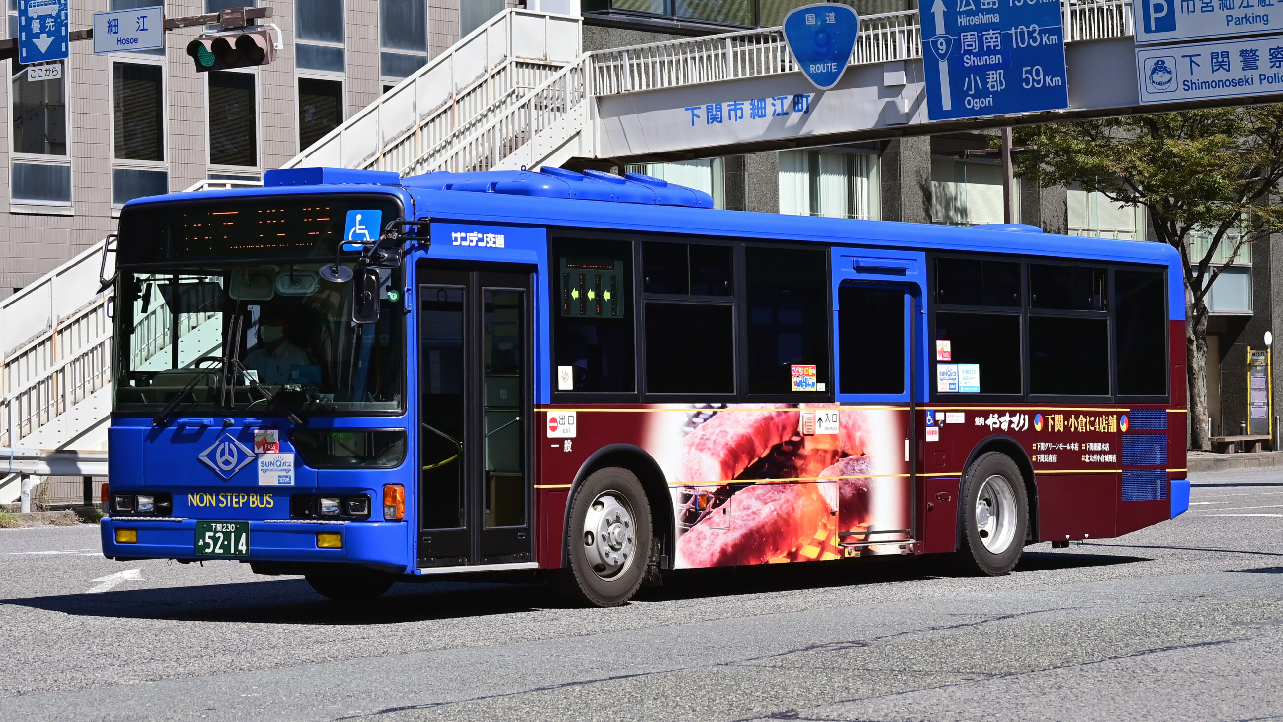 5245, 5247は「愛と希望の済生会」というキャッチコピーが目を引く済生会下関総合病院の専用デザインとなっており、そこを通る系統によく割り当てられている様子。