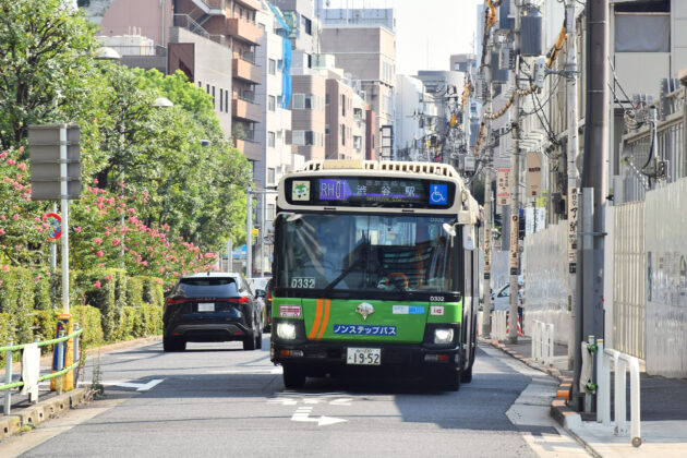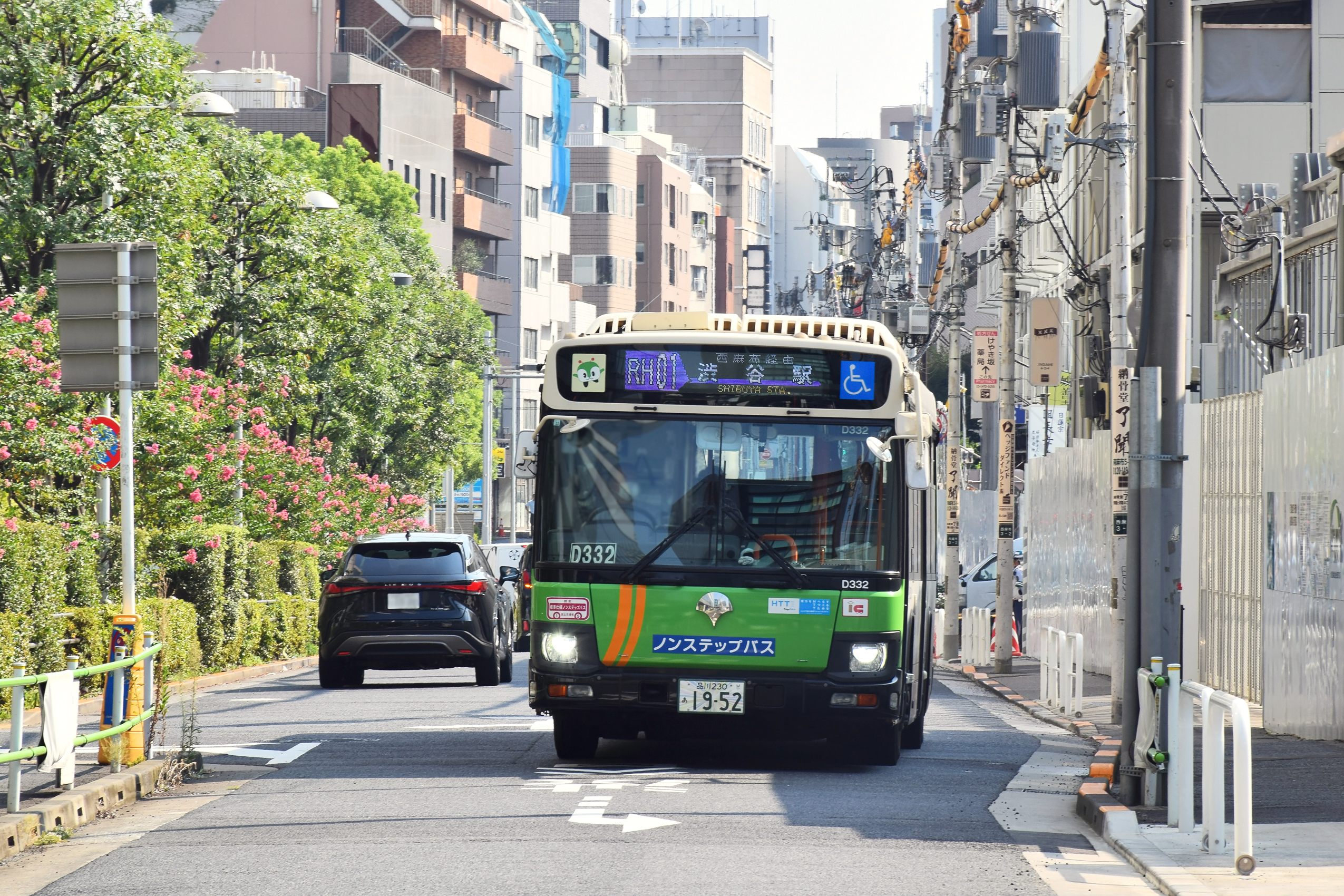 RH01 渋谷駅~六本木ヒルズ 14:00~21:30頃の間、六本木けやき坂を休止。六本木ヒルズを出ると次は六本木六丁目となる。