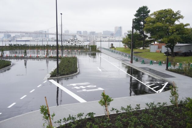 現在の晴海埠頭公園の南東側に接して乗り場が作られ、海に接した部分が折返所となる。枠はかなりの台数が確保されており、海沿いの眺めのいい折返所となりそうだ。10月下旬時点ではポールが建っていなかったが、移転までには整備が完了すると思われる。