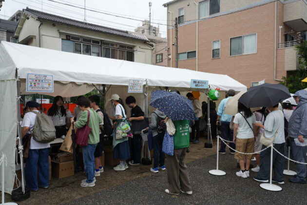都営バスの新作グッズはなかったものの、直近の新グッズ(パッチンバンド等)が買い足せるとあって人気を博していた。グッズ販売は6月の荒川線イベントと同じくクレジットカード・QR等の電子決済を可能としたが、前回の反省を踏まえて並んだ客が現物を手にとってレジに持っていき、レジの台数を増やして行列を抑えていた。
