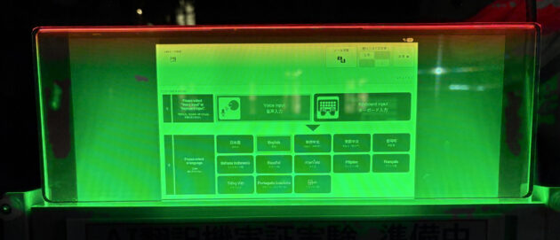 増え続けるインバウンド需要により都営バスでも訪日外国人客の乗車が目立っており、バス乗務員の多言語対応の需要が高まっていることを受け、「安心して利用できる環境づくり」の対策として、バス運転席脇にAI翻訳透明ディスプレイを設置し、様々な利用者とのコミュニケーションが問題なく行えるかの検証を行うもの。既に前年11月には渋谷区ハチ公バスで導入実証実験が行われており、今回は2例目となる。