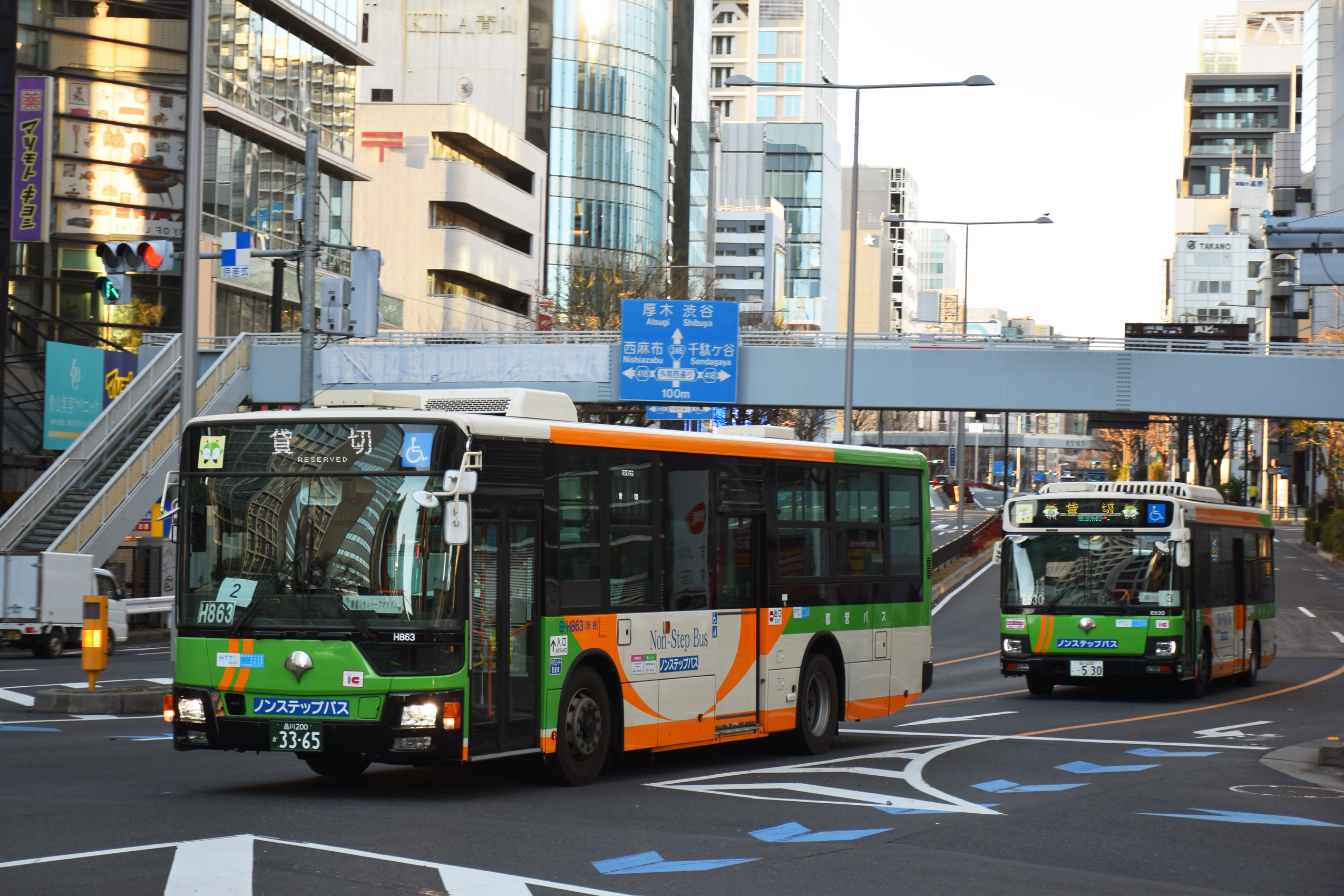 また、マラソンコースのスタッフ輸送等で渋谷から3台特輸(貸切)が運転され、コース周辺を走っていた。