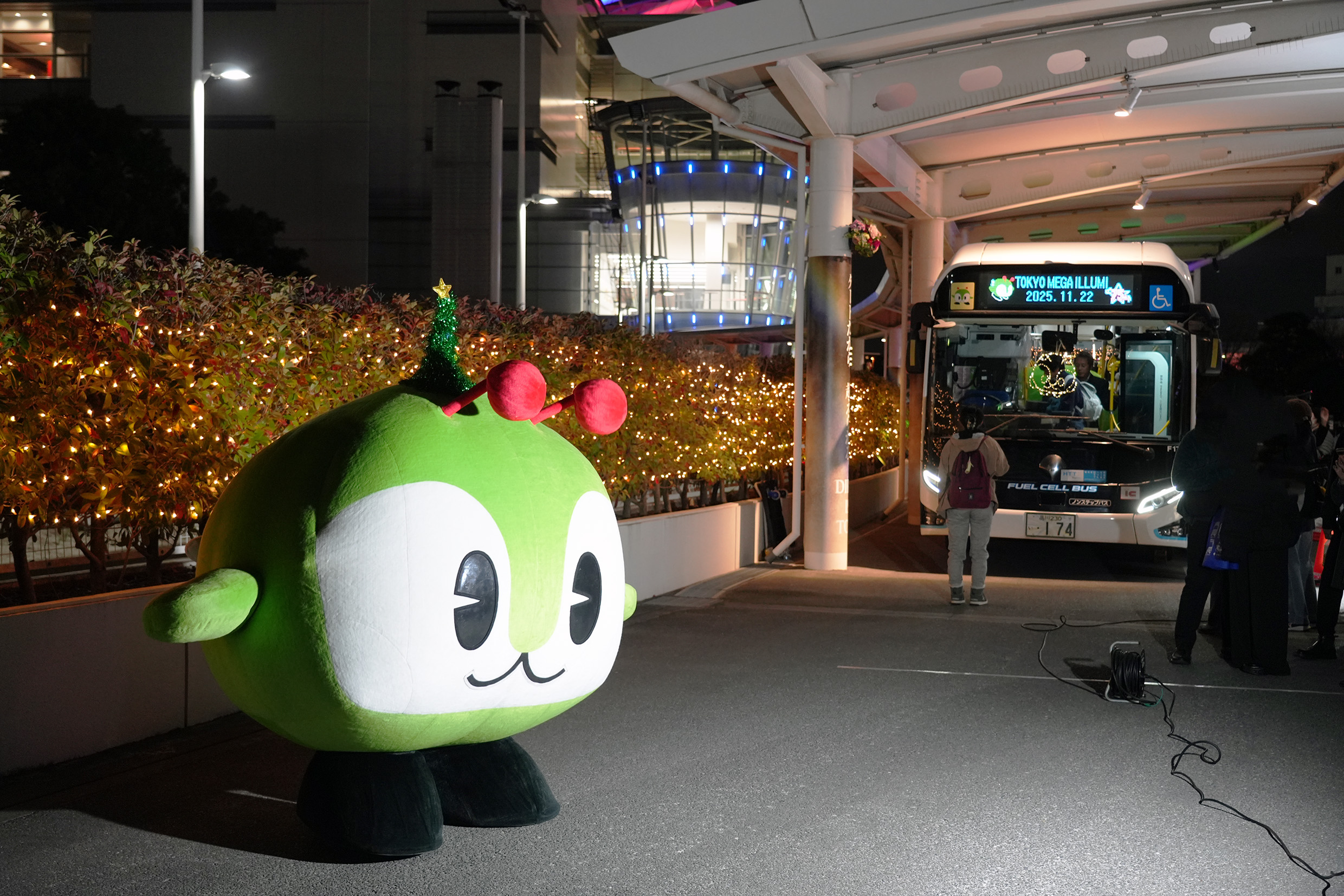 11/22、メガイルミに出展。クリスマスバス・みんくるも