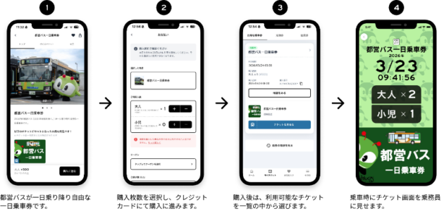 令和8(2026)年3月23日より、交通局はスマホで購入可能な「都営バスデジタル乗車券」を通年販売すると発表した。昨年の7月~9月に期間限定で販売していた乗車券を通年販売するもので、23区内の都営バスに何度でも乗り降りできる一日乗車券(大人500円、小児250円)となっている。一度に8枚まで購入可能。スマートフォンの「RYDE PASS」アプリを使って乗車前にキャッシュレスで購入できるほか、通年販売記念の割引キャンペーンとして、1人1回のみ100円引で購入できるクーポンコード「tobus26hp」を3月23日~5月10日の期間限定で配布中。
