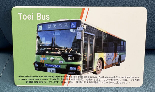 令和8(2026)年3月11日より、巣鴨営業所管内にてAI翻訳透明ディスプレイ導入実証実験が再開される。1月より実証実験を始めていたものだが、混雑時に乗客に押されて破損するケースが起こり、しばらく実験が見送りとなっていqる期間は3月19日まで。